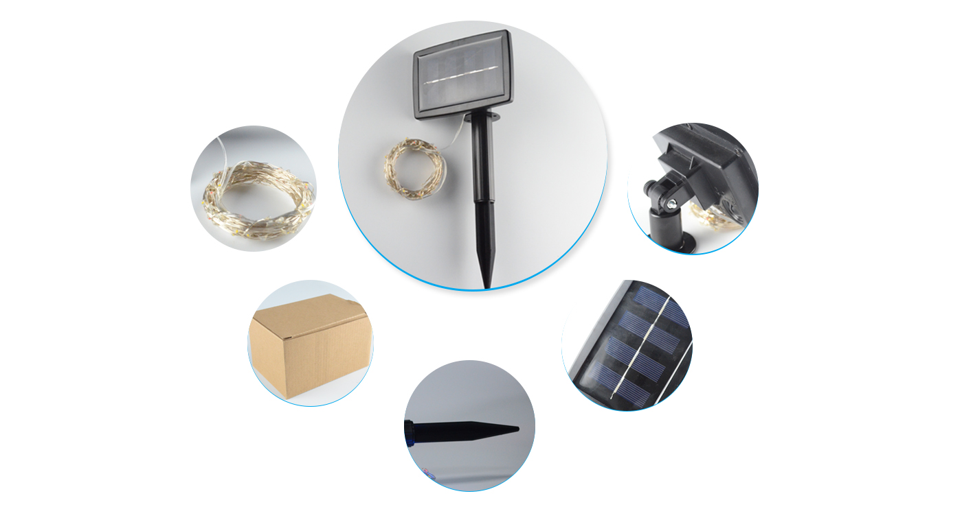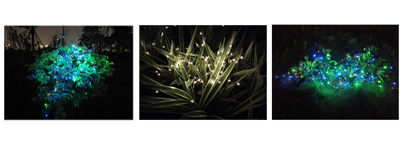 This solar string light is very bright ,both thin and flexible waterproof copper wire, which can be easily bent into surrounding plants, signs, furniture shapes and other shapes, arbitrarily twisted, make the shape more beautiful, and not easy to break, making the scene more beautiful.So you can build the shapes you want easily , it's easy to store also.Led string lights is wonderful for outdoor christmas decorations.