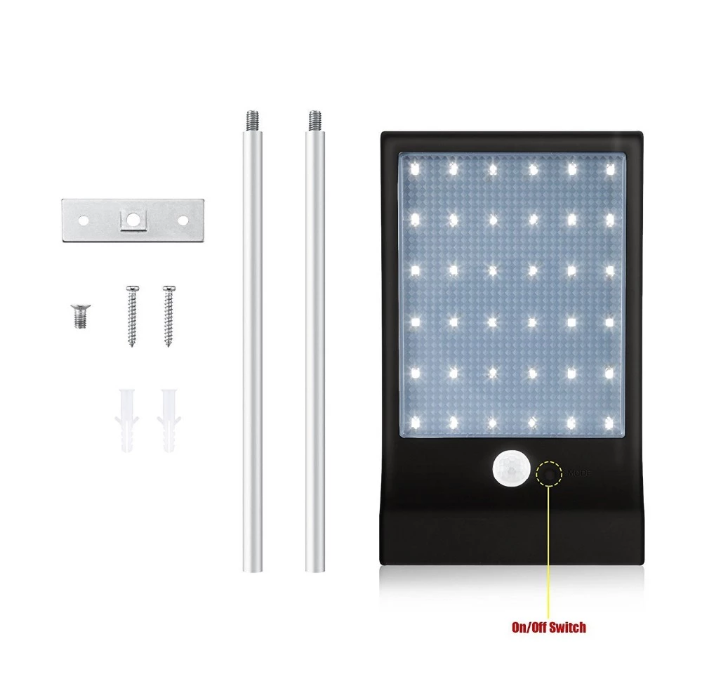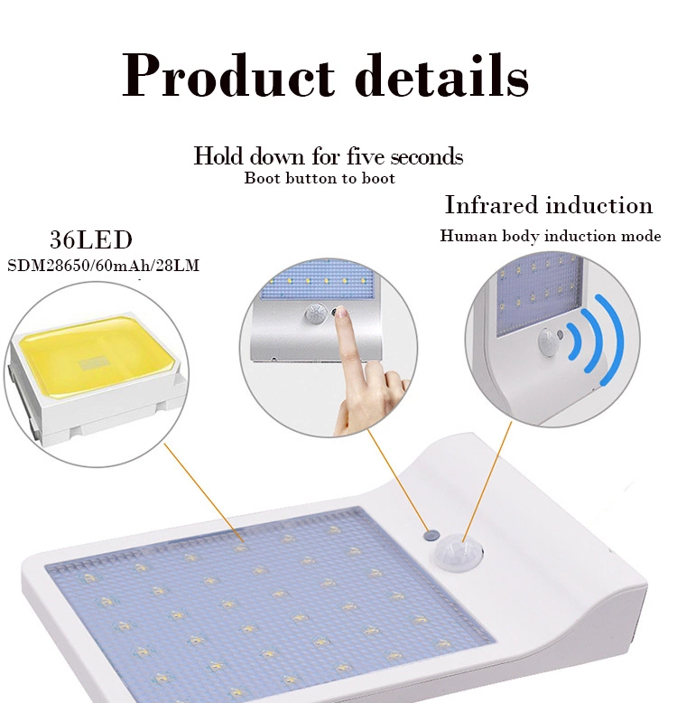 High bright 36 led wall solar light outdoor, home indoor solar motion activated street led spotlights