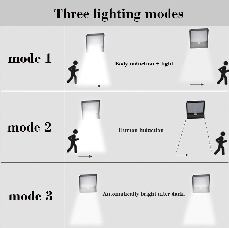 ▶ 3 Optional Modes & 2 ways to install-Auto on at dusk and switch to induction model after 3 hours; highlight when motion detected, lunar/off when people go away after 15 seconds. One way is directly install the light on the wall, another way is extend a pole to stall.