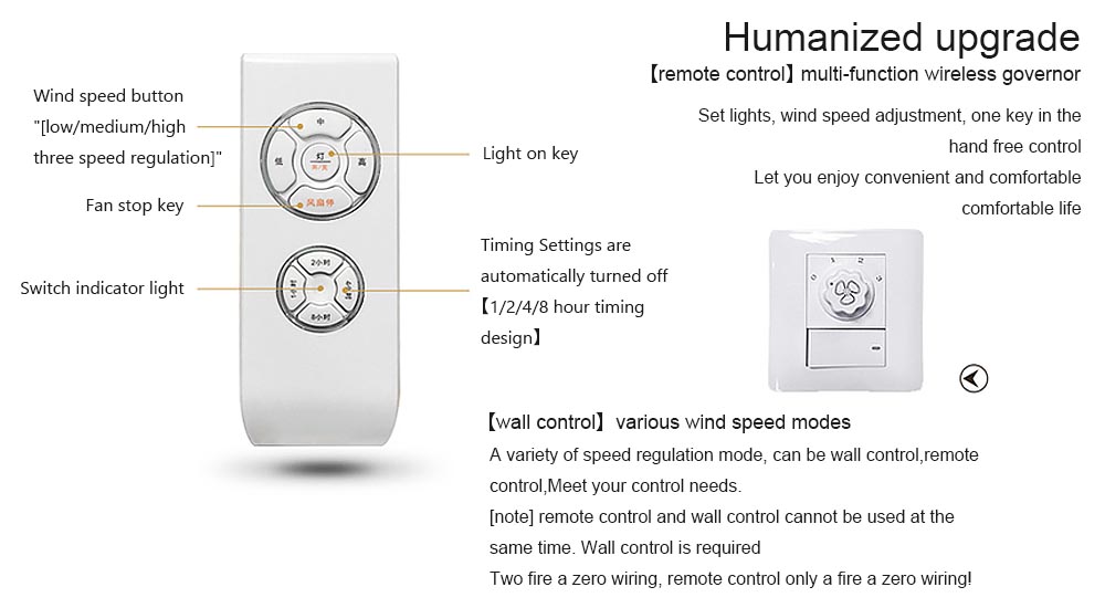 Pull rope, remote | 1. Remote control and wall control cannot be installed at the same time! | |