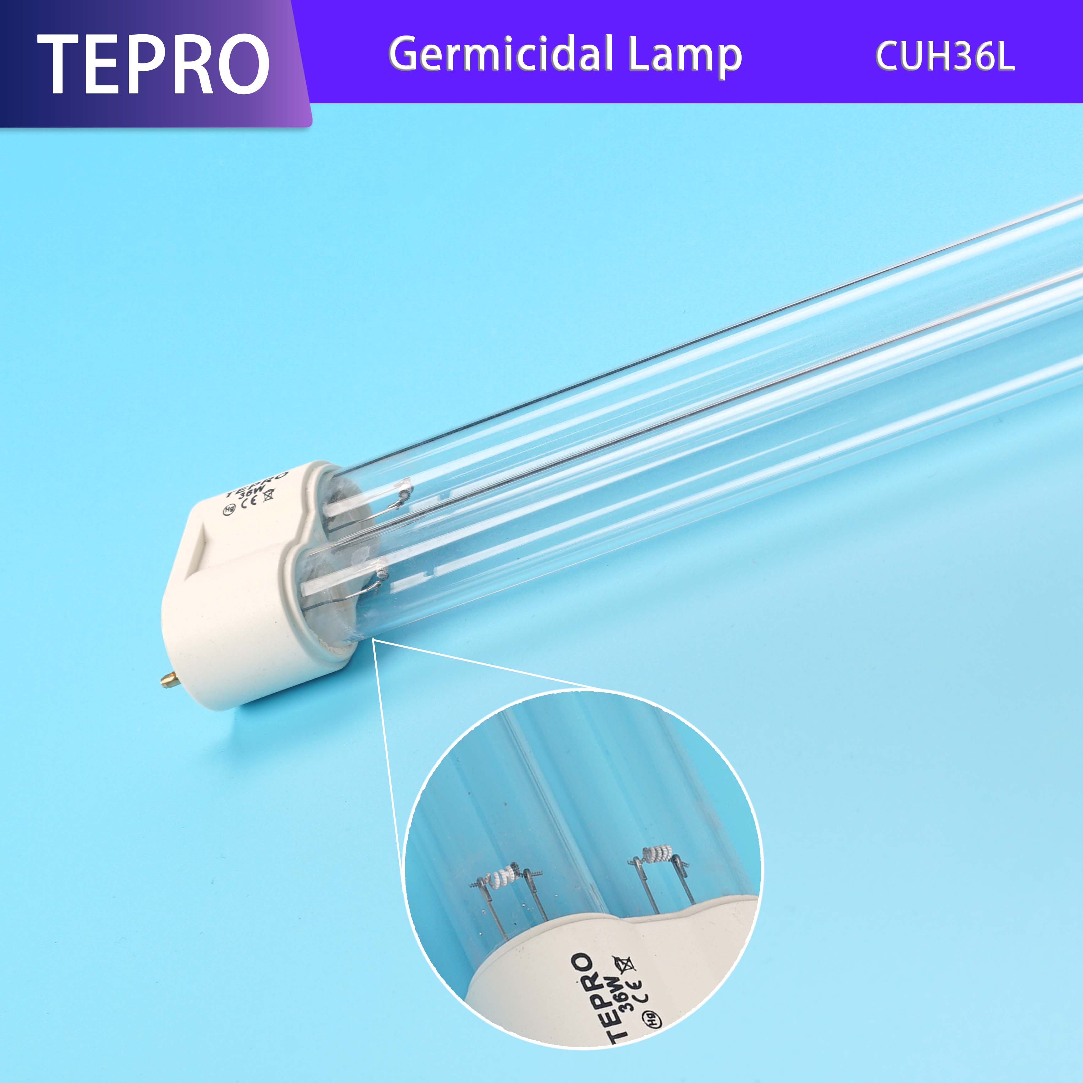 There are 4 kind of base for the H-shape UVC lamp. The 2G7 base is plastic material and has 4pins. The G23 base is aluminium base and has 2pins. The capacitance and starter can be installed in the G23 base. The 2G7 and G23 glass tube is 12mm.