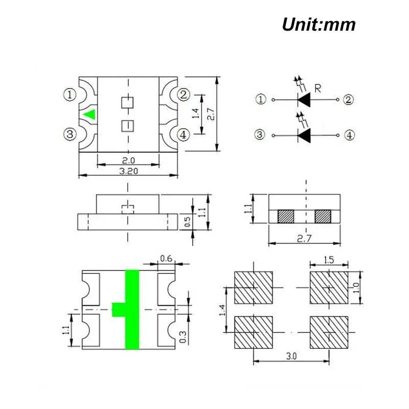- Luminous Intensity: R:140-160mcd G:210-250mcd