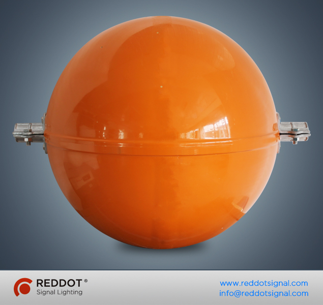 Power Line aircraft warning marker ball is designed to provide the daytime visual warning or nighttime visual warning if comes with reflective tape, for electricity transmission line and overhead wire for aircraft pilots, especially cross river high voltage transmission lines. RedDot OMARK power line marker ball is made of high-grade Fiberglass Reinforced Plastics(FRP), the diameter of 600mm and 800mm are available to meet different customers’ needs.