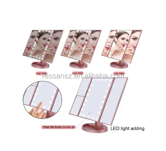 Factory wholesale Trifold makeup mirror with light with sub power Mirror Foundation Brush Vanity Mirror