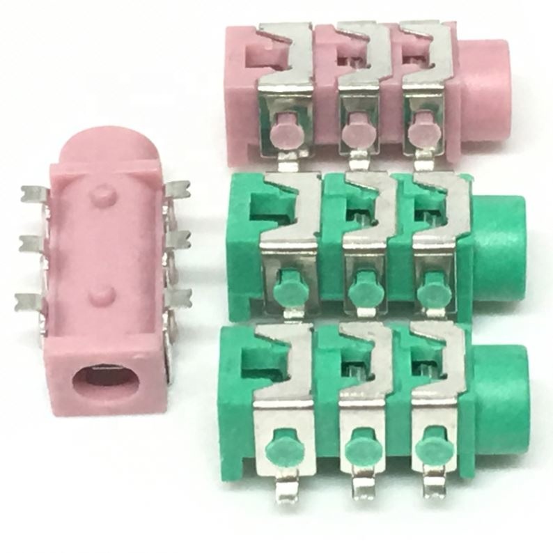 PJ-313 PJ313 3.5mm SMT SMD 6 Feet Audio Jack Stereo Phone Jack Black and Green Pink Can Be Choose PJ-313D Earphone Socket