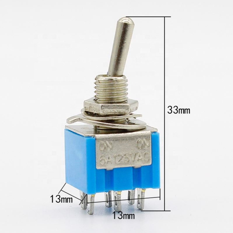 Product: views:12Blue 6-Pin DPDT ON-ON Mini 6A125VAC Miniature Toggle Switches