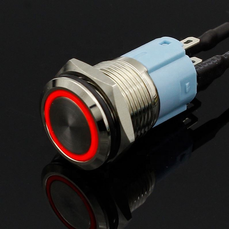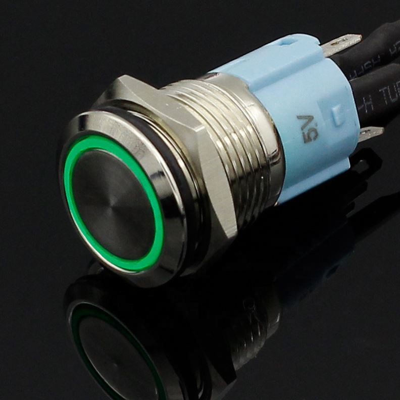 5V 12V 24V 220V Metal push button switch with light 16mm flat head self-reset Momentary Push Button waterproof LED metal switch