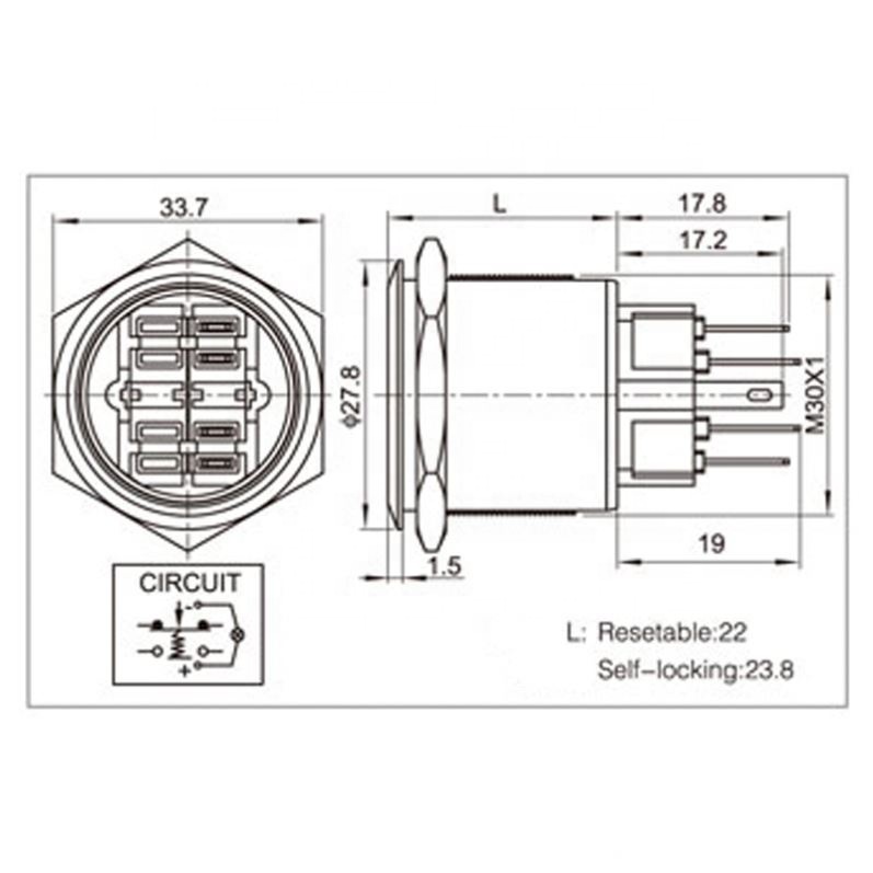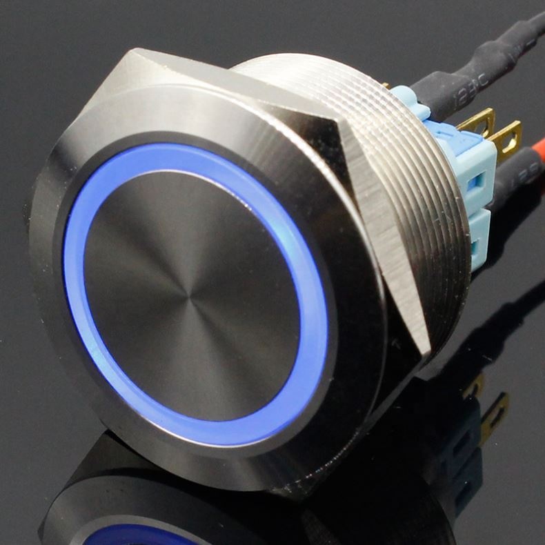30mm 6V 12V 24V 220V Blue Ring Led Light Momentary/Locking Push Button Switch DPST Metal Industrial Boat Car DIY Switch