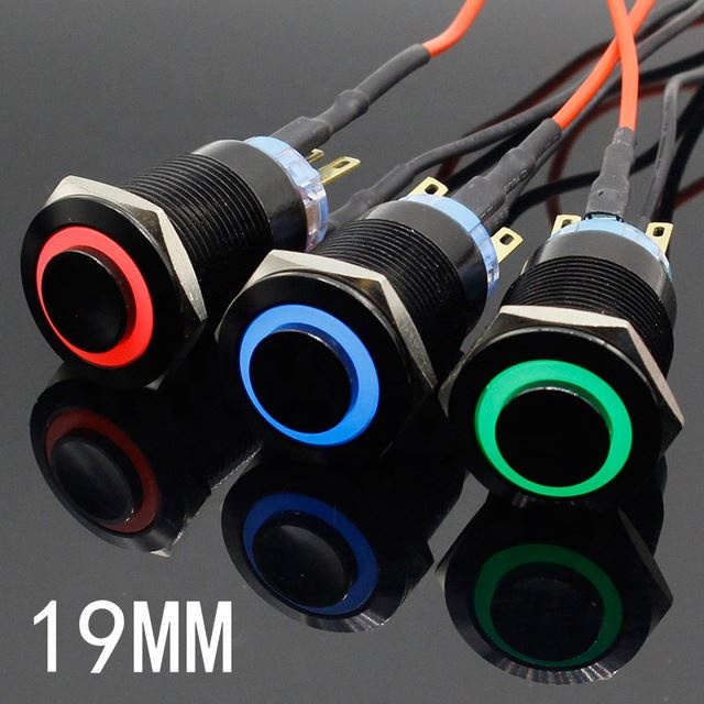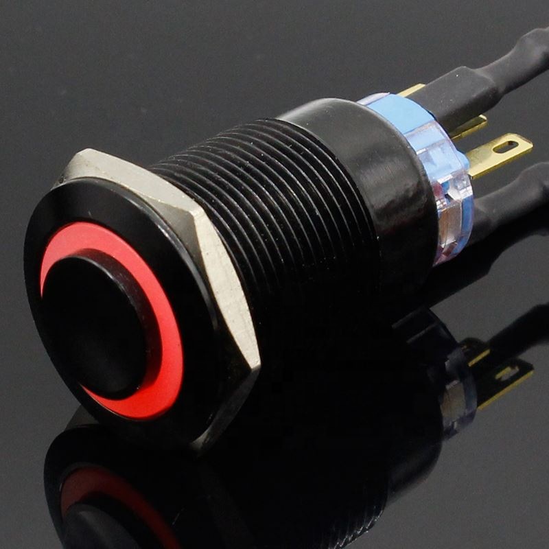 19mm Metal Alumina black press button Led power mark lamp button Momentary/Latching control PushButton Switch High Head