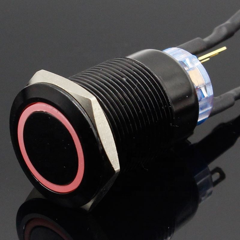 19mm Metal Alumina black press button Led power mark lamp button Momentary/Latching control switch PushButton Switch