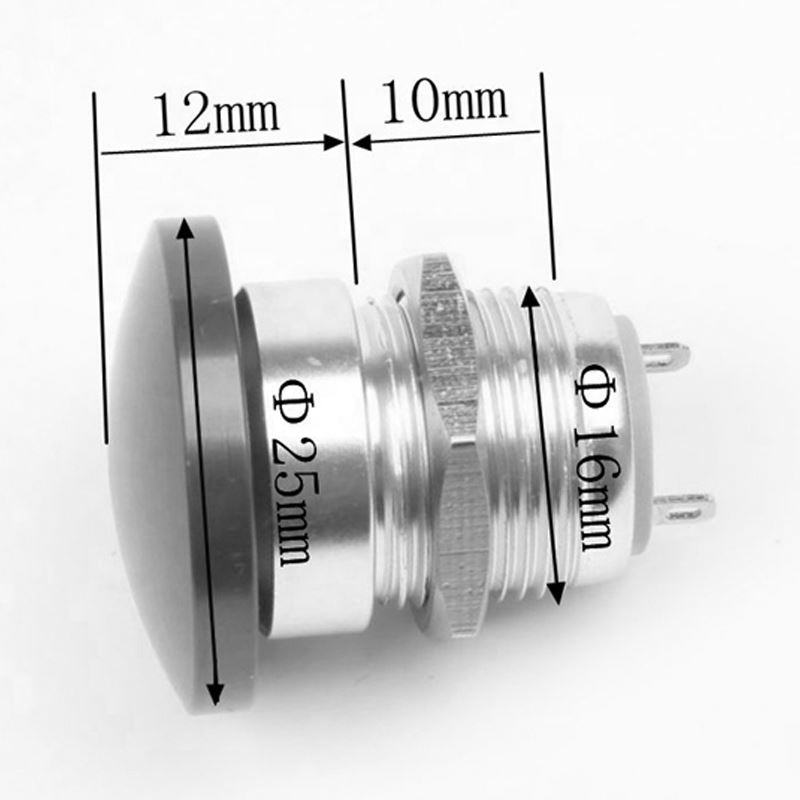 16mm metal mushroom head start self-reset button switch often open green screw foot current 5A