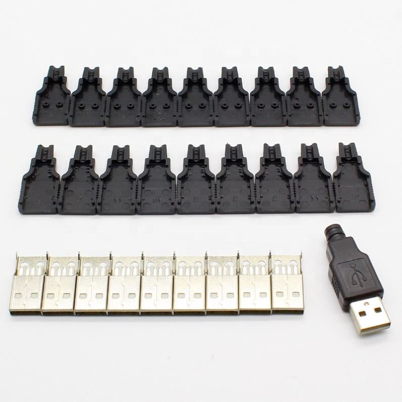 hot New 10pcs Type A Male USB 4 Pin Plug Socket Connector With Black Plastic Cover