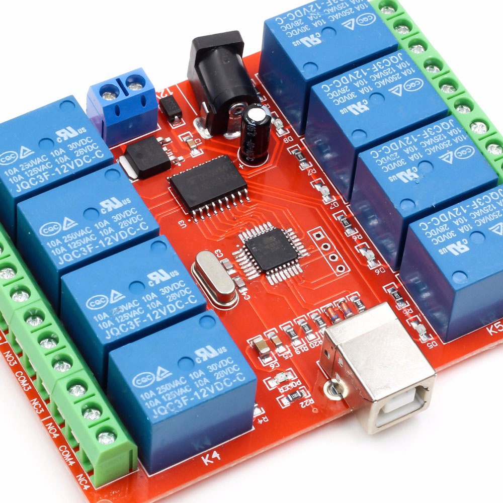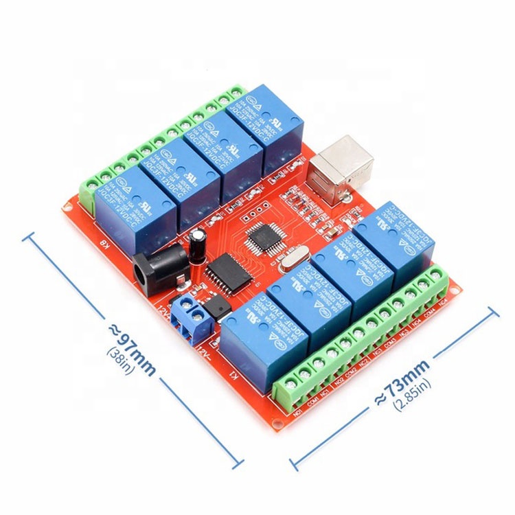 6. Board power outlet and terminal, two access power mode convenient and flexible. After connecting the power, even if the computer shut down or USB from the computer pull out, the relay can also maintain the set state.