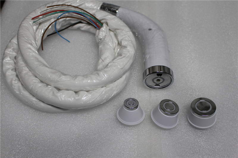 2. One treatment handpiece with multiple sizes of treatment heads, three kinds of monopolar treatment heads and two bipolar treatment heads are combined in a treatment tool, and the doctor can realize single-pole and bipolar switch by replacing the treatment head.