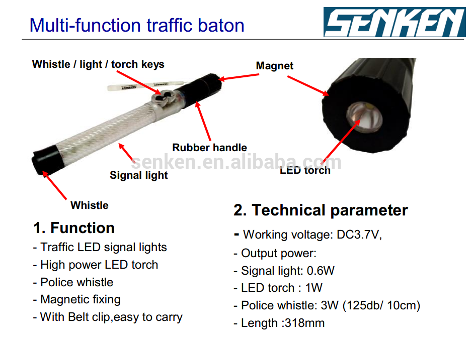 Product: views:5Senken rechargable LED light baton with LED torch