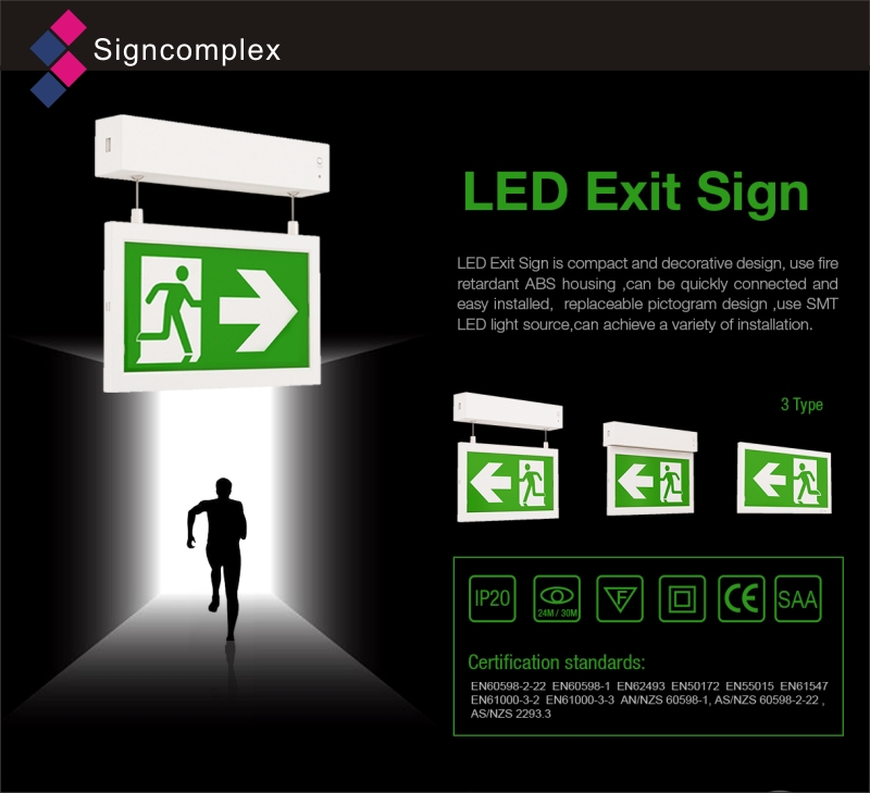 Led Ceiling or Wall Mounted Fire Safety Emergency Exit Signs Light,Light Emergency,Exit Sign