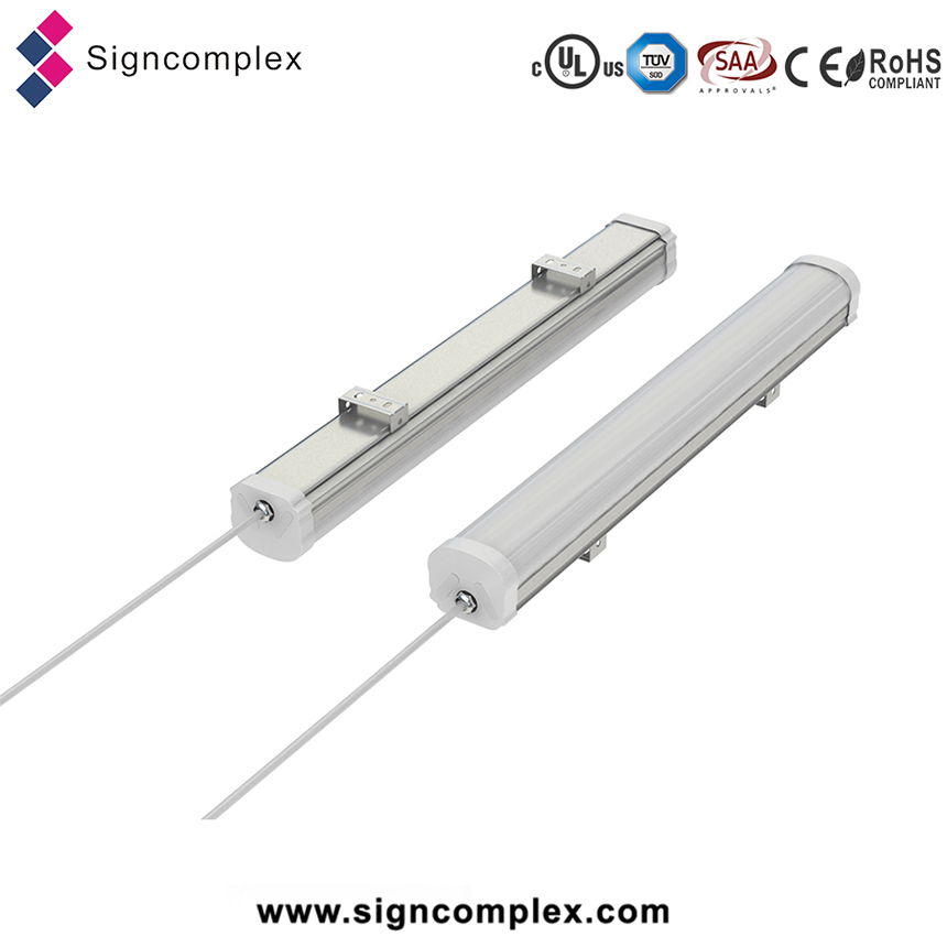 Tri-proof light is usually used in environment which require water-proof ,dust-proof,slight-corrosion-proof lighting,and it is widely used in shopping mall,warehouse and other indoor places.Tri-proof light of medium power can be ceiling mounted or suspending installed.Adopt PC as the material which ensure that it can work stably in different environment.White appearance.Lifespan:36,000 hours.Operating environment:-20℃-35℃,CE/RoHS compliant.