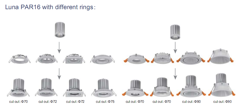 Luna PAR16 is designed to replace halogen 35W, 50W spot, delivering halogen-like warm white accent beam. The patented heat-sink design maintain perfect heat dissipation. It provides 3 types of beam angle for various accent beam demand, could fit most of halogen fittings in the market.