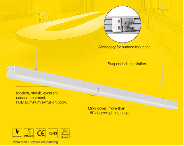 LED linear lights adopt premium aluminum profile, different dimension and size, easy to install.
