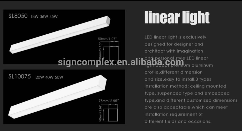 Hot selling high quality indoor led suspended ceiling lighting linear panel light