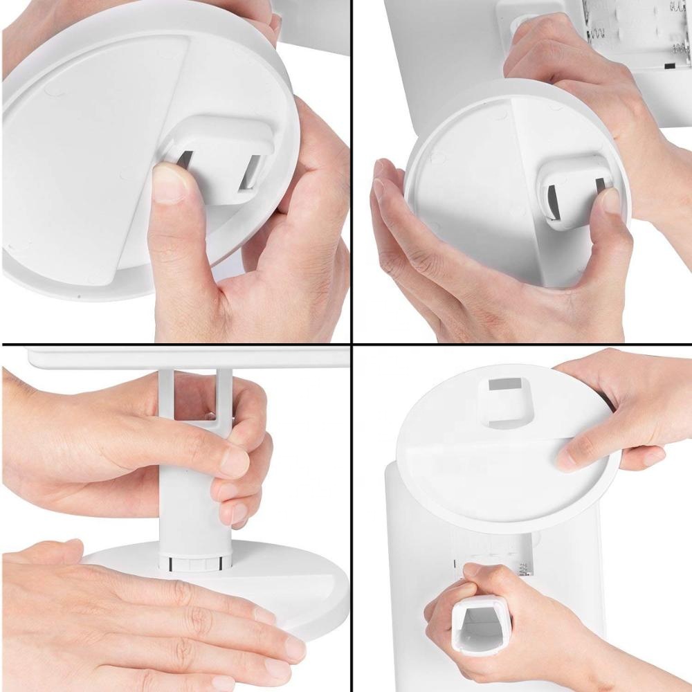3.Ultra clear: 180 degree free rotation can fix at any position and balance facial light. You don"t need a magnifying mirror because this mirror creates an ultra clear view of your skin.