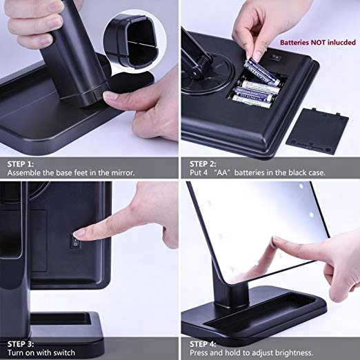2.Nature light Makeup Mirror--20 Led lights mirror provides a clear reflection with soft LED lights that closely simulates natural sunlight to allow perfect viewing in anywhere anytime, even though in a bar or party;