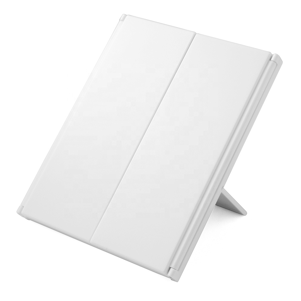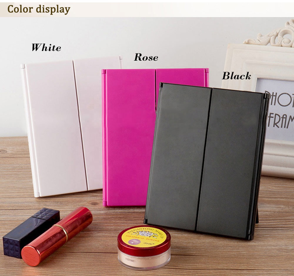 3.Trifold design--Three-sided high definition mirrors enable you to see more angles of your face and profile (NO MAGNIFIER). It"s helpful for checking misaligned eyeliner and skin conditions every day to create a flawless face. When you do not use it, you can keep it folded so as to prevent dust that you care about.