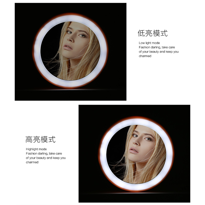 2.Portable makeup mirror -- It is a round shape and very tiny , easy to carry, you can take it when you have a date, LED outdoor make up mirror, easy dressing wherever;