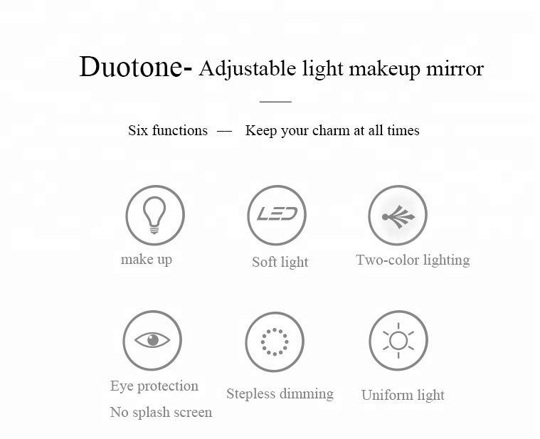 7.Multiple Uses--Mirror can be used as a lamp.