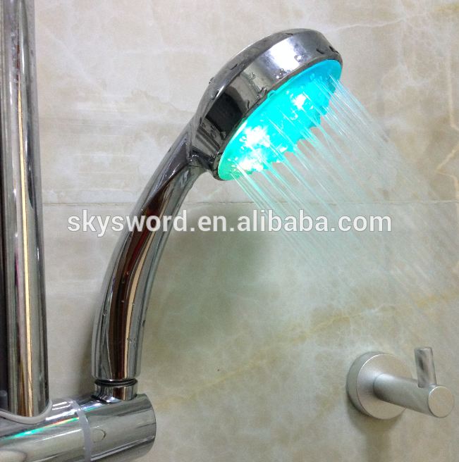 LED color changing shower head with HOT, WARM, COLD water detection colors. This lighted LED shower head changes color with the temperature of the water, ensuring you know by sight exactly what to expect before you jump in. It even flashes red if the water is too hot (above 46 deg C) so you do not burn yourself!