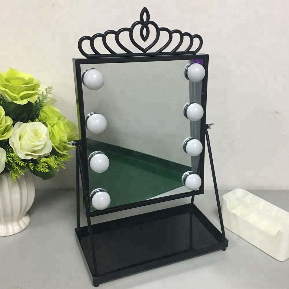 Detachable foldable adjustable brightness led illuminated cosmetic mirror with 8 led blubs