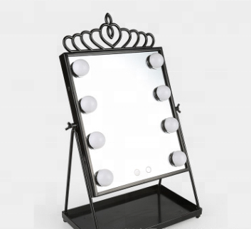 2018 latest desktop makeup mirror powered battery and USB charged with European crown modeling