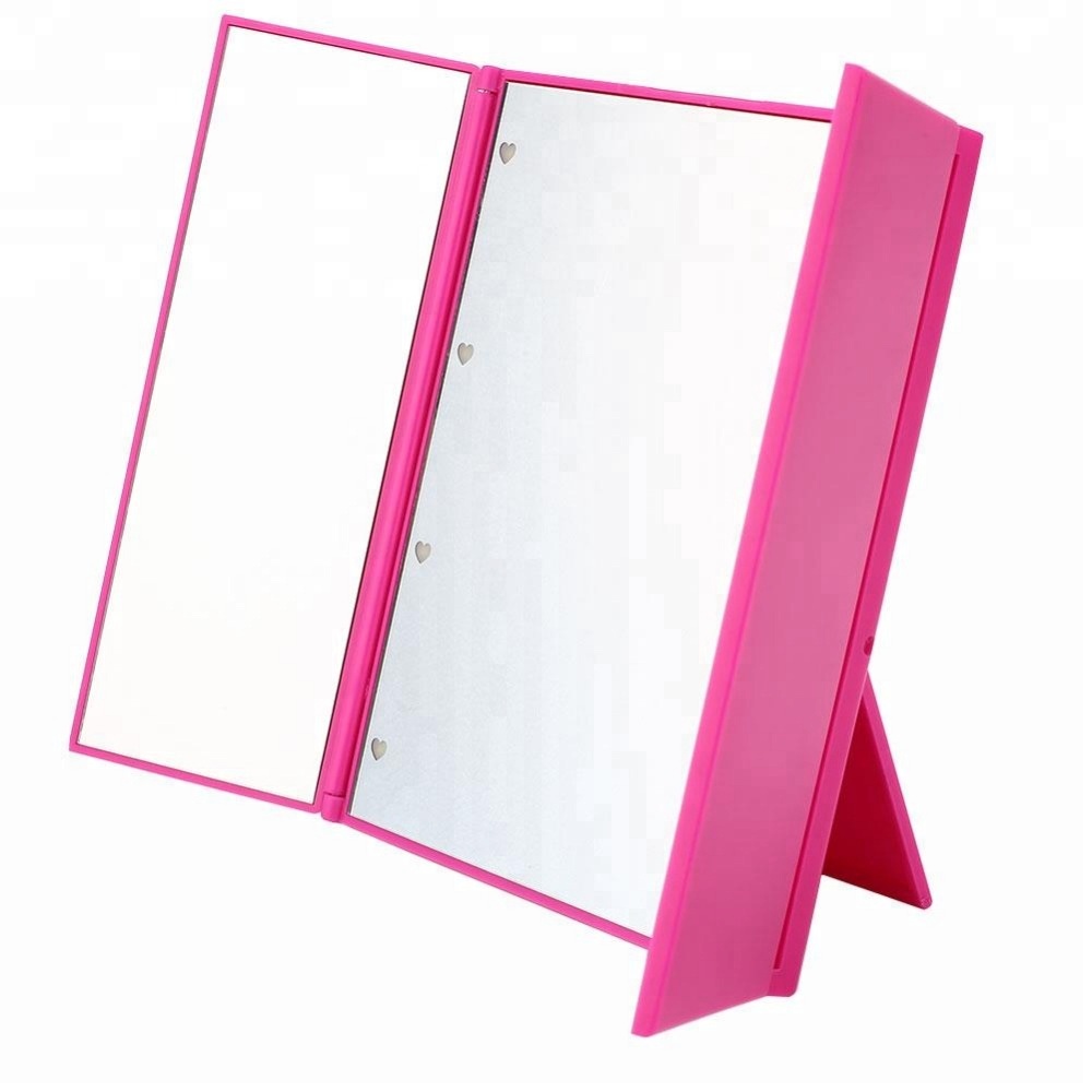 ♕Dimmabled lights: This lighted makeup mirror has 8 lovely heart-shaped LEDs, offering soft and natural light, illuminating your face brightly, eliminating shadows , preventing make-up unevenness. Press the button to adjust the brightness you want for perfect makeup & skincare. It can light up every detail of your face clearly even in dark places.♕Trifold design: Three-sided high definition mirrors enable you to see more angles of your face and profile (NO MAGNIFIER). It’s helpful for checking misaligned eyeliner and skin conditions every day to create a flawless face. When you do not use it, you can keep it folded so as to prevent dust that you care about.