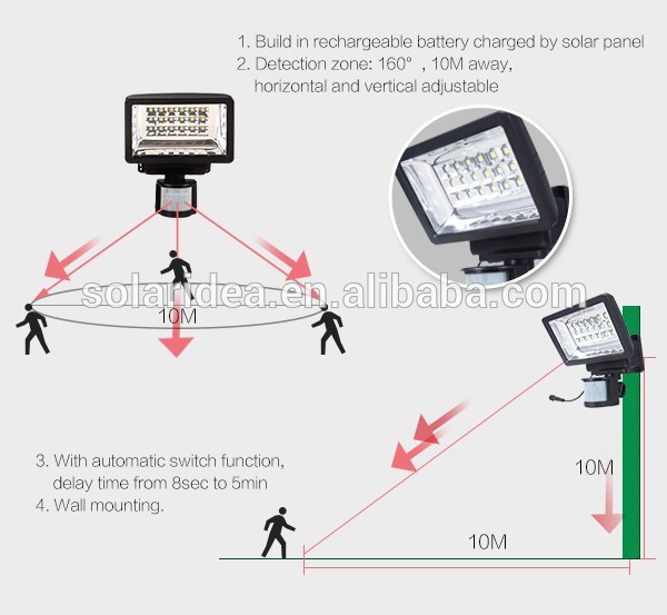 - solar motion light Detection zone: