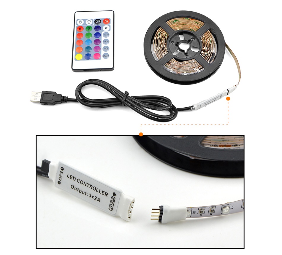 1 x 200cm : 1pc 200cm LED strip and 1pc remote controller