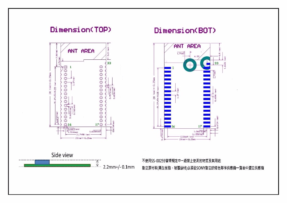 • 32 pins for DIP module, 33pins for SMT module (with additional 33 pin)