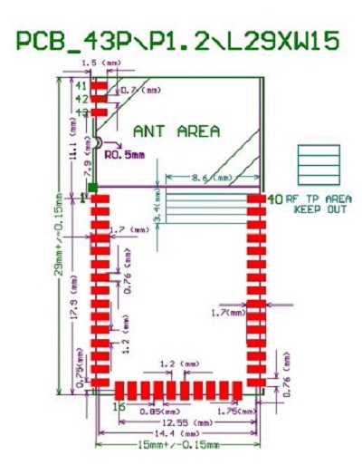 - 45 pins for SMT module Size:15mmx29mm