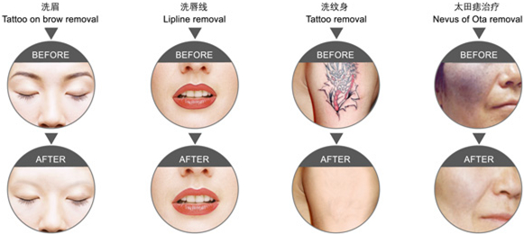 1.The 532nm wavelength: to get rid of freckles, eyebrow tattoo, failed eye line, tattoo, lips line, shallow red and brown pigment and so on.
