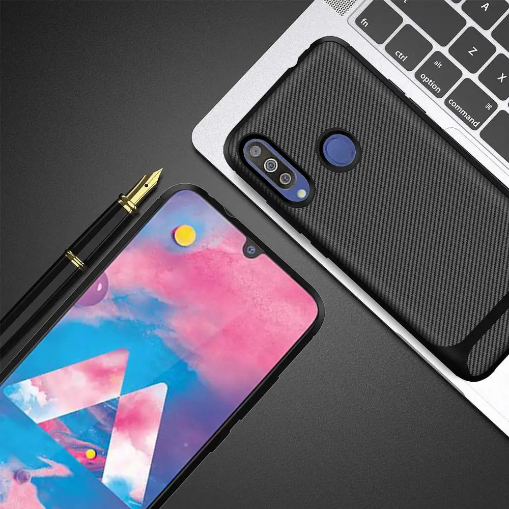 Shockproof New Carbon Fiber Silicon Back Cover Phone Case For Samsung galaxy M30