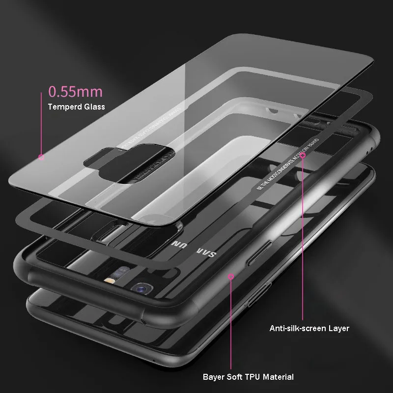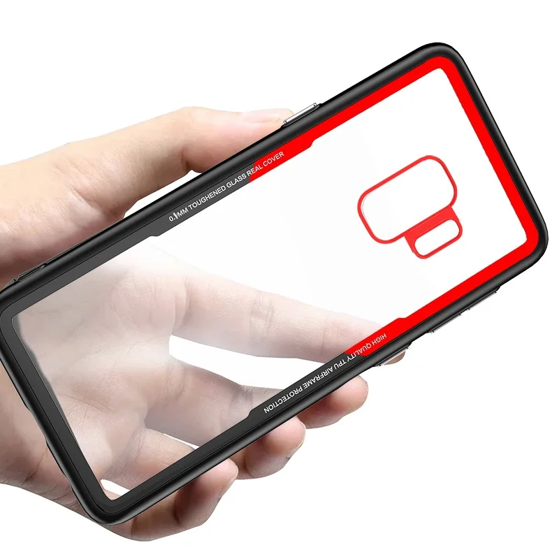 Clear 9H Tempered Glass back Cover Phone Case for Samsung galaxy S9 TPU frame