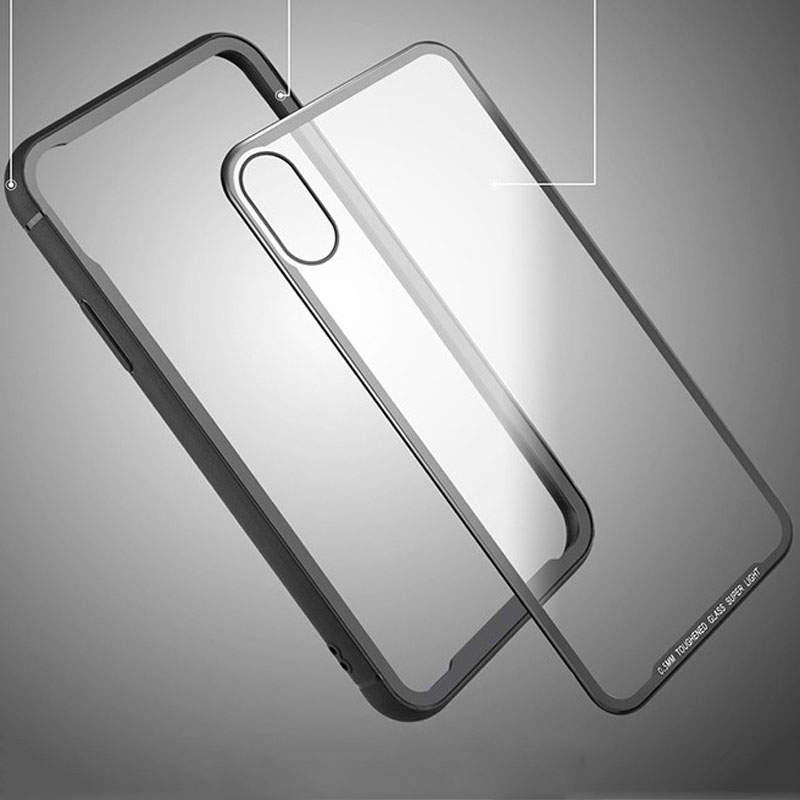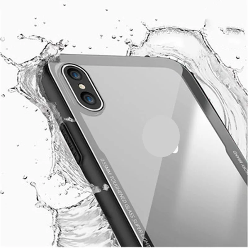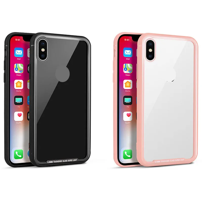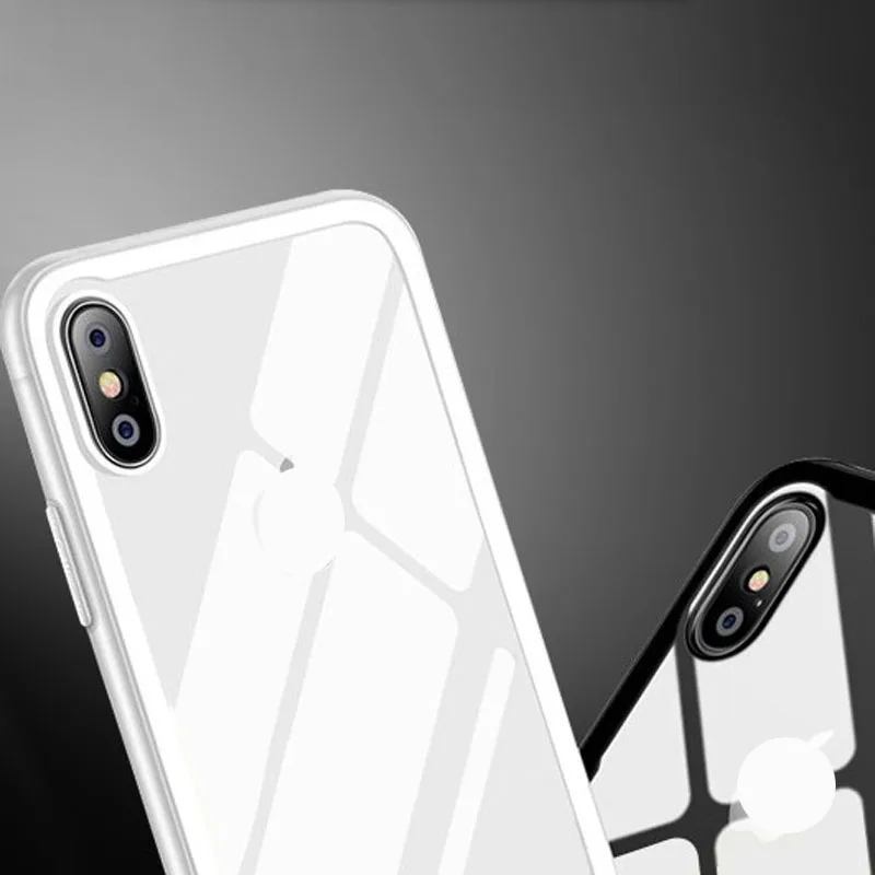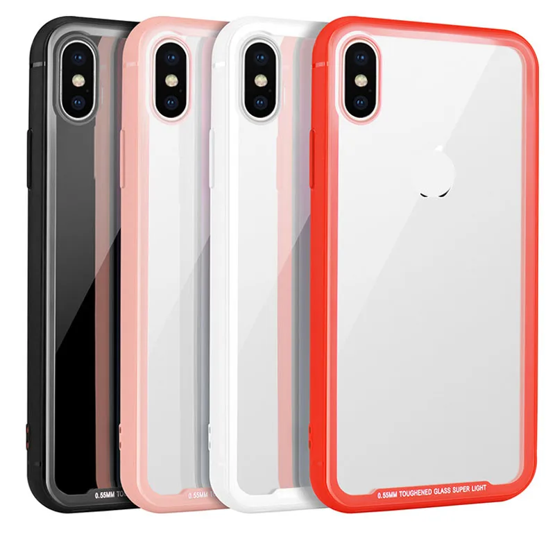 Clear 9H Tempered Glass back Cover Phone Case for iPhone XS TPU frame