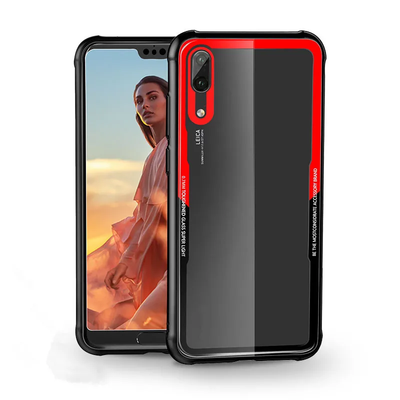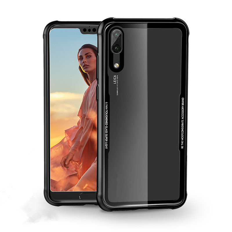 Clear 9H Tempered Glass back Cover Phone Case for Huawei P20 Lite TPU frame
