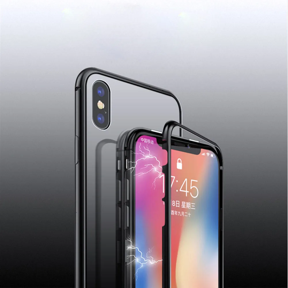 Metal frame 6D glass flip cover drop Magnetic phone case For Samsung galaxy A7 2018