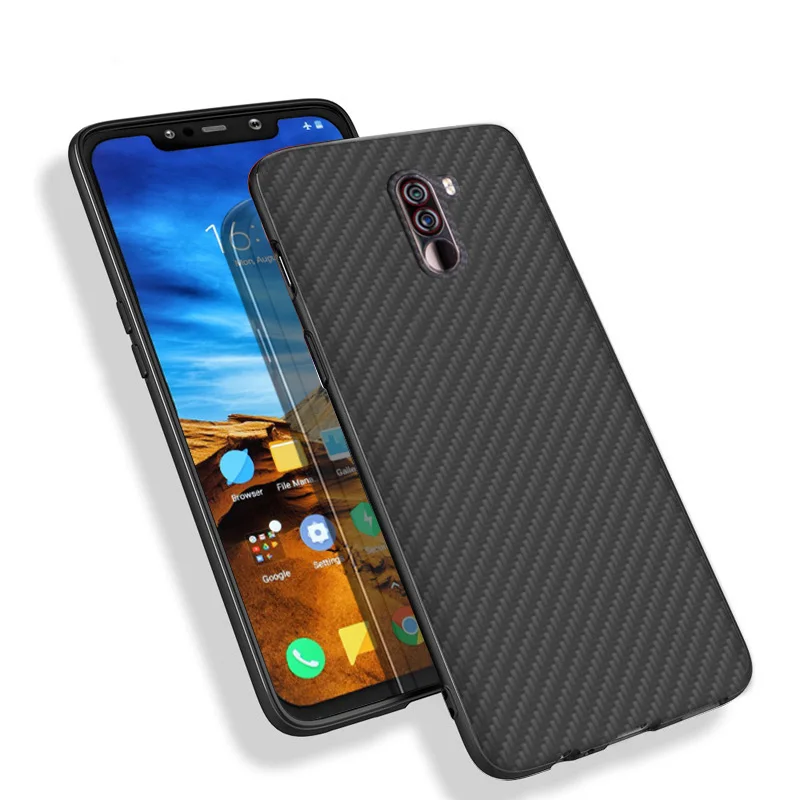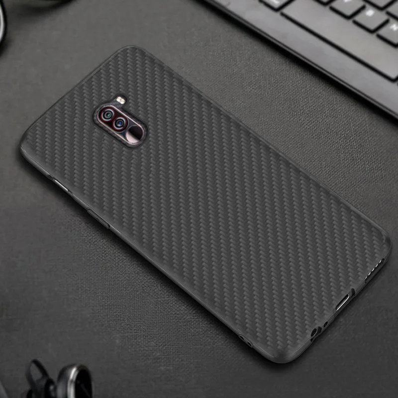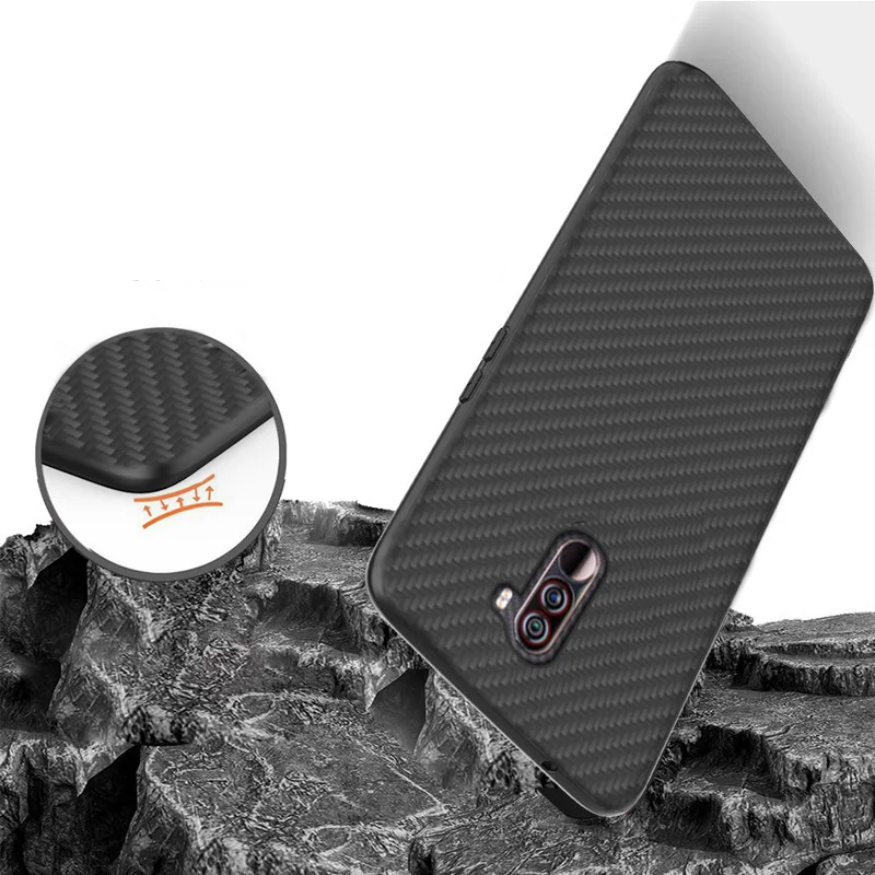 New Arrival Matte Finish Carbon Fiber Textured Light Thin Shock Absorbing Bumper Back Cover case For Xiaomi pocophone F1