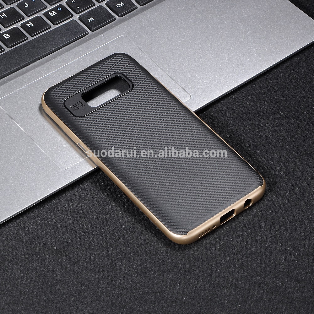 2 IN 1 Carbon Fiber TPU+PC Back Cover Case For Samsung Galaxy S8