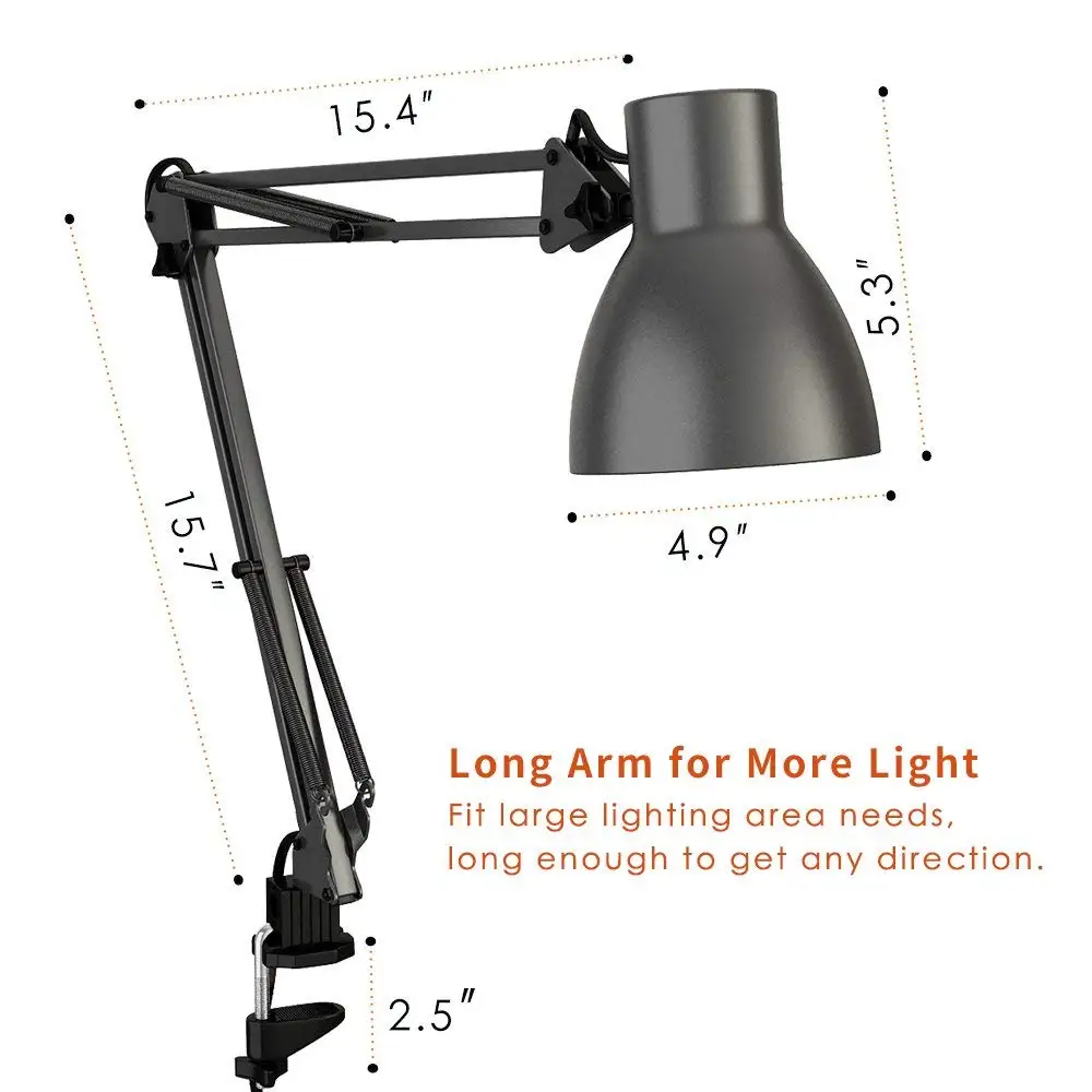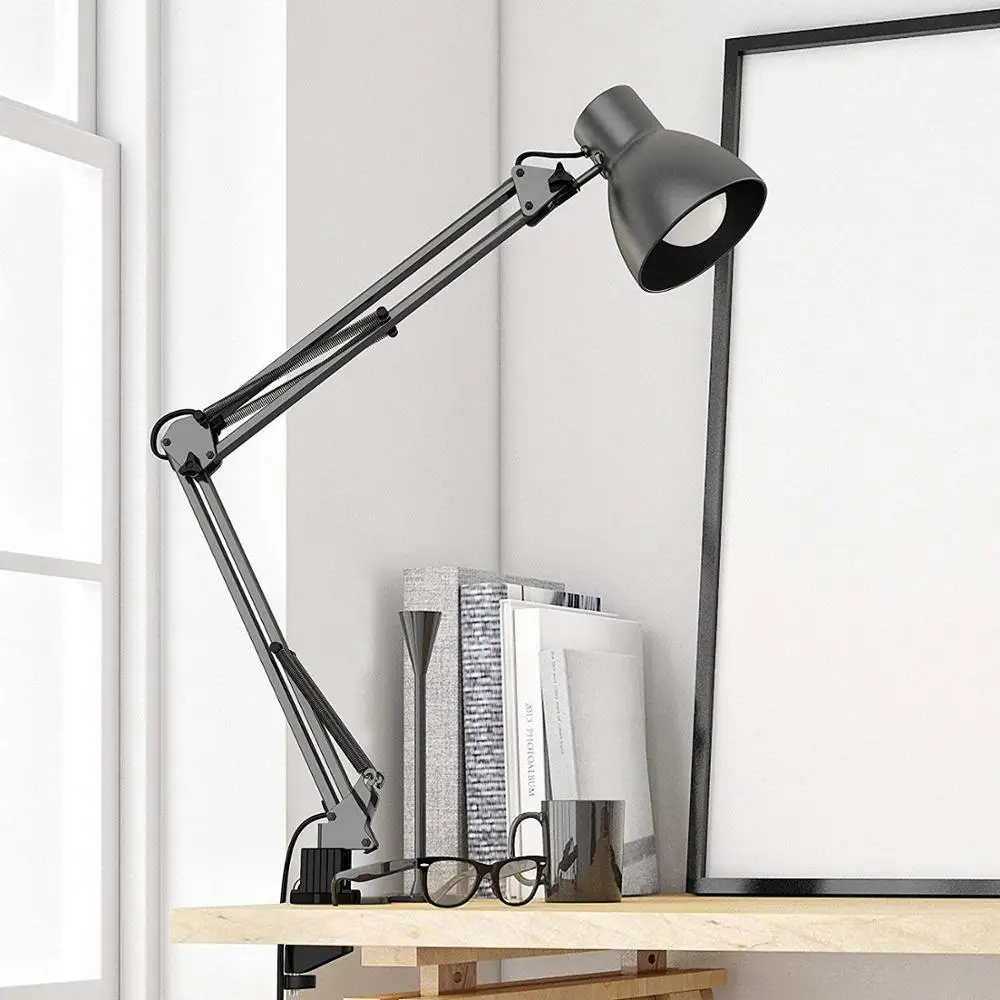 - PREMIUM QUALITY: Solid metal and black finish for swing arm and lamp shade which is durable and exquisite, lamp stands firmly with weighted base, power plug for safer operation