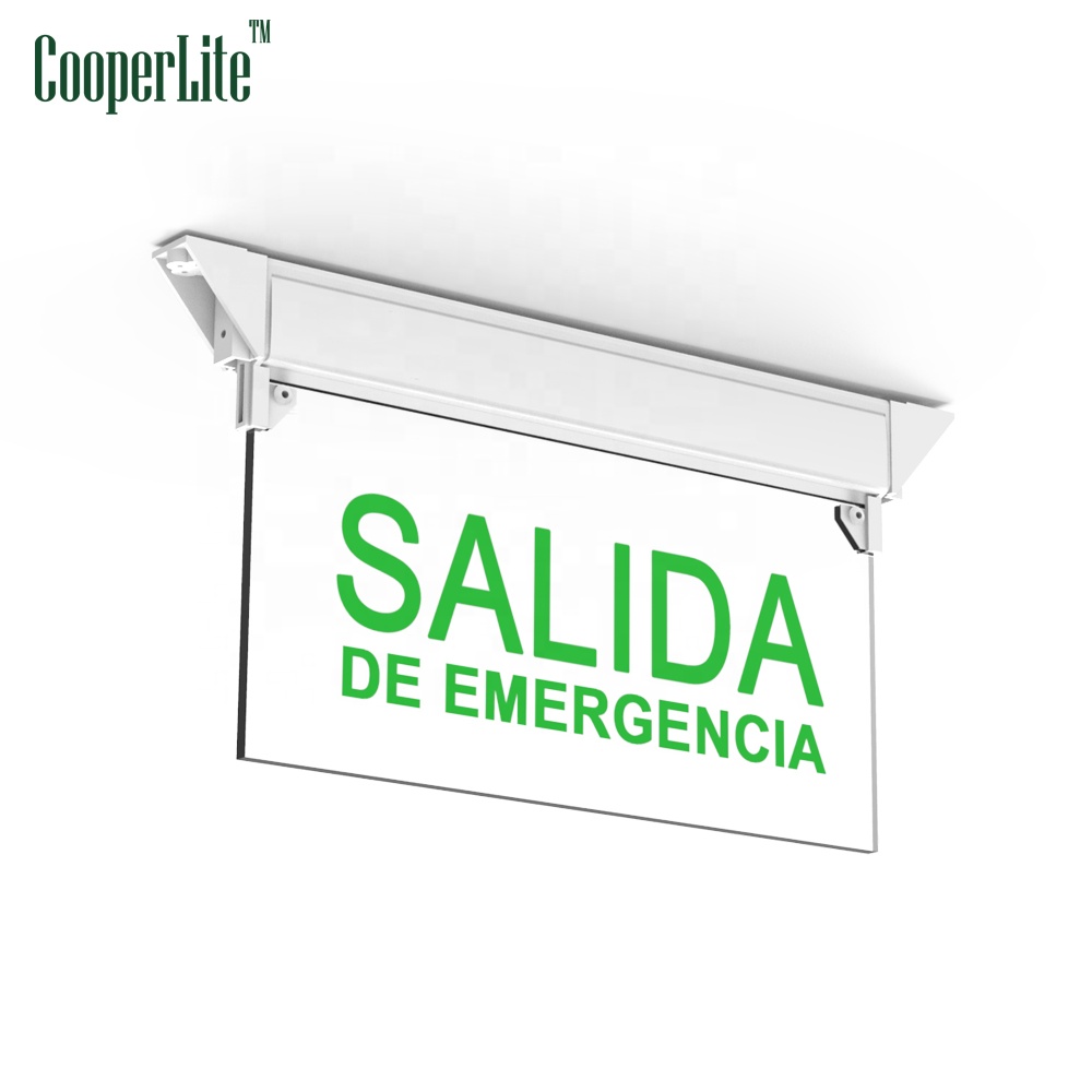 This emergency exit sign could be mounted on wall or ceilings in home or workshop or garage.