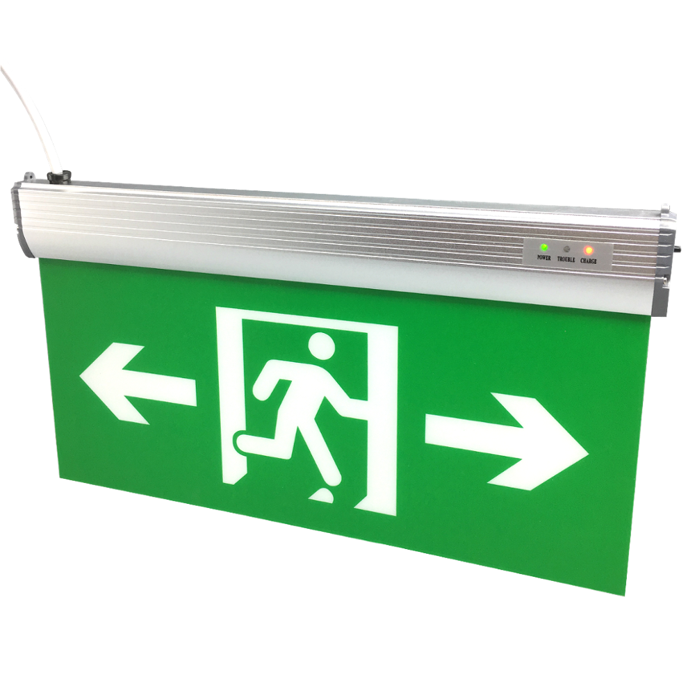 This emergency exit sign could be mounted on wall or ceilings in home or workshop or garage.
