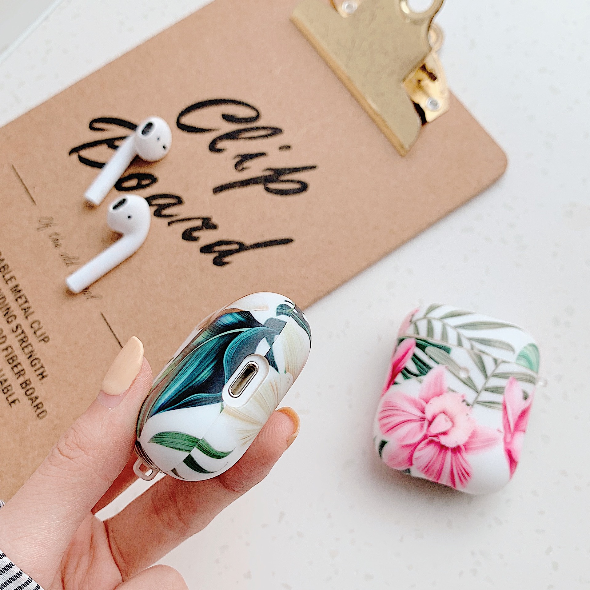 - for Airpod Case Cover tropical leaf flower