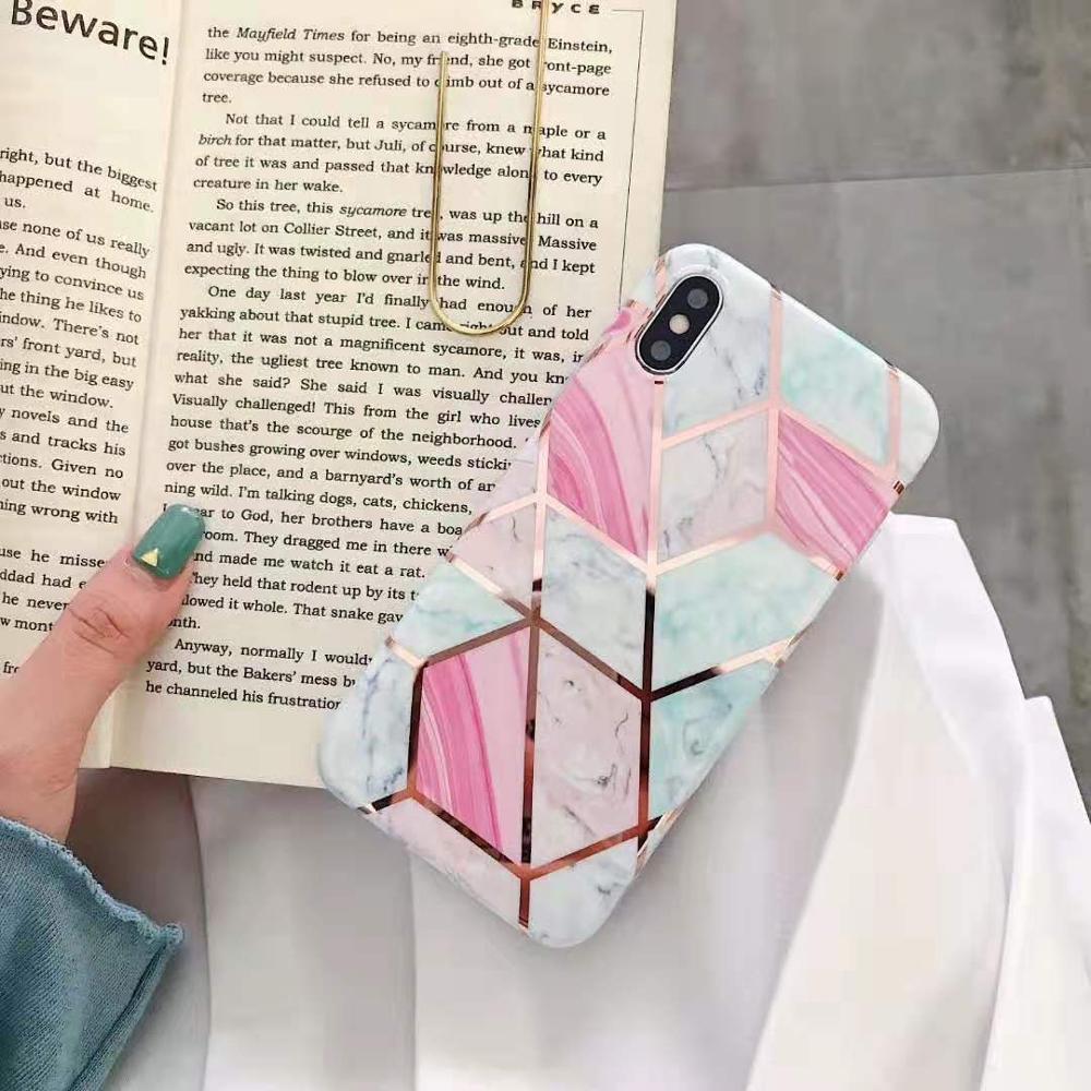 - with electroplated geometric marble pattern